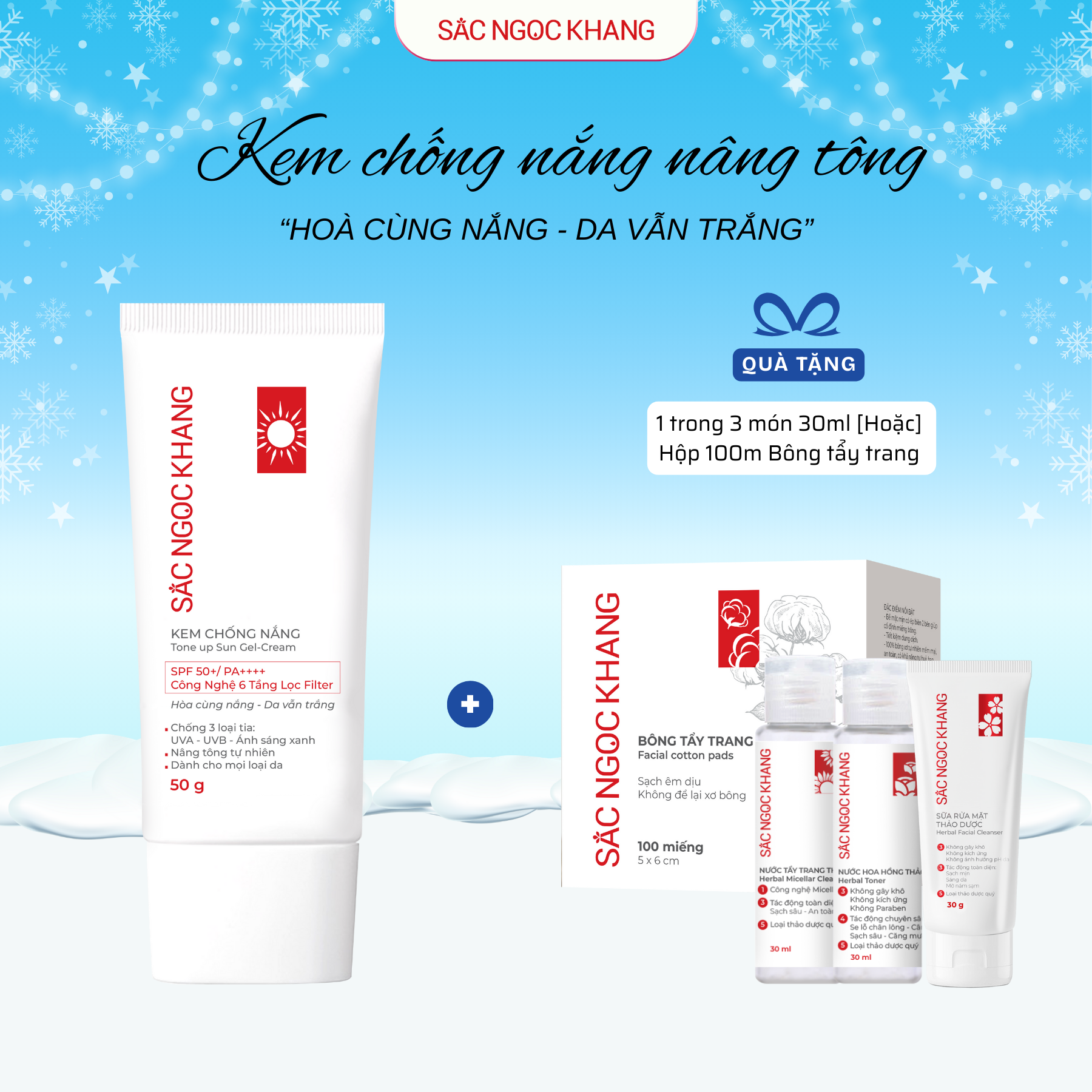 - 1 món mini (Nước hoa hồng 30ml Hoặc Nước tẩy trang 30ml Hoặc Sữa rửa mặt 30g)