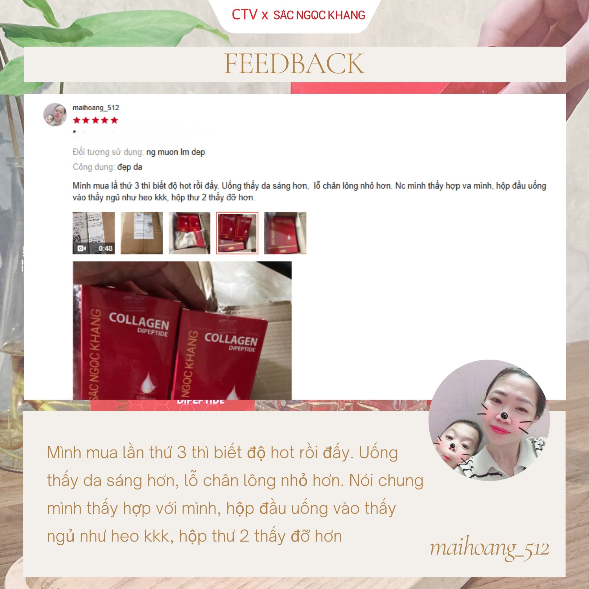 - Sản phẩm Collagen Dipeptide Sắc Ngọc Khang tinh khiết 100% có thể dùng bổ sung lâu dài để duy trì một làn da trẻ - khỏe - đẹp.