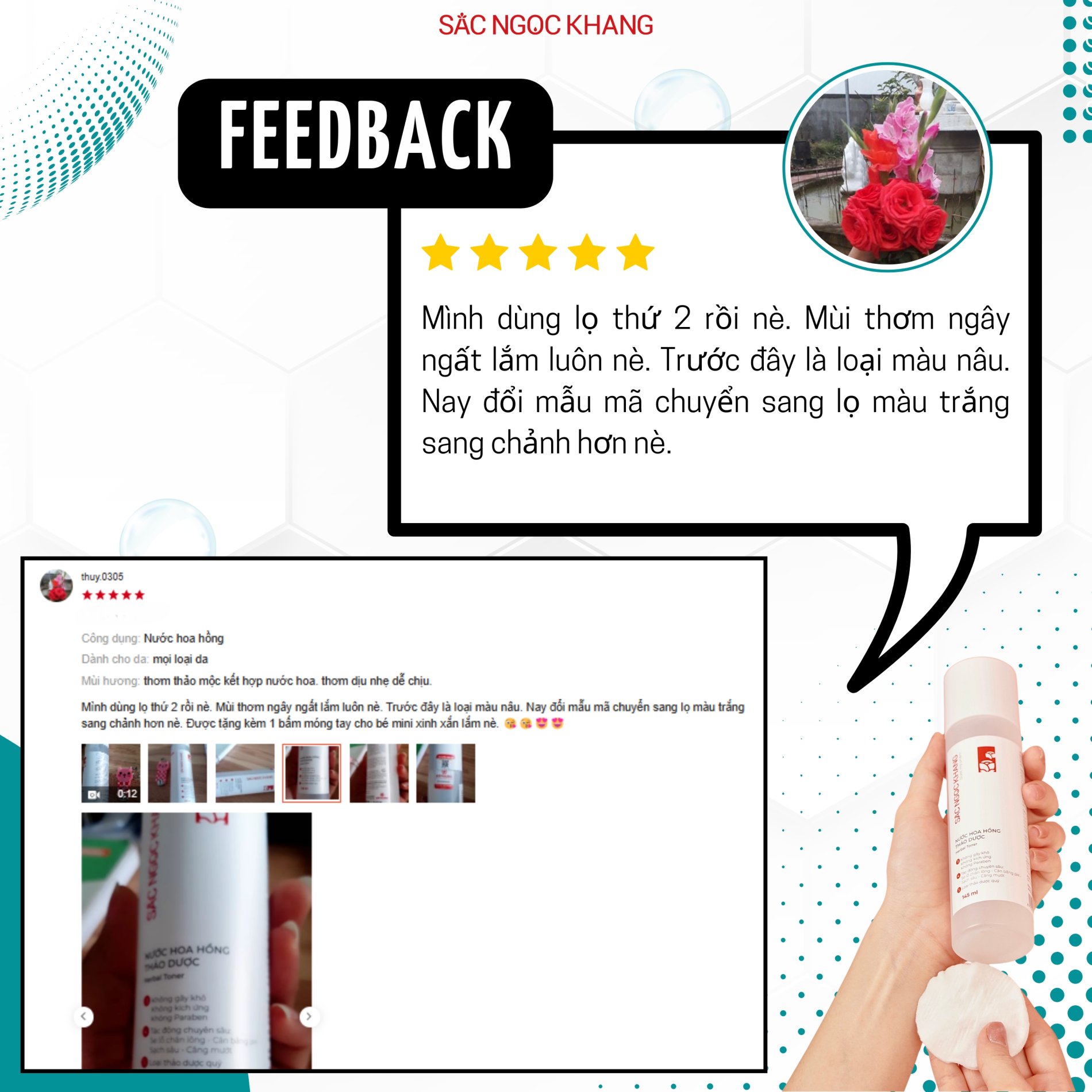 Nước Hoa Hồng Thảo Dược Sắc Ngọc Khang giúp làm sạch sâu, cấp ẩm, cân bằng độ pH, kháng khuẩn và se khít lỗ chân lông cho làn da tươi trẻ mỗi ngày.Nước Hoa Hồng Thảo Dược an toàn, lành tính cho mọi loại da