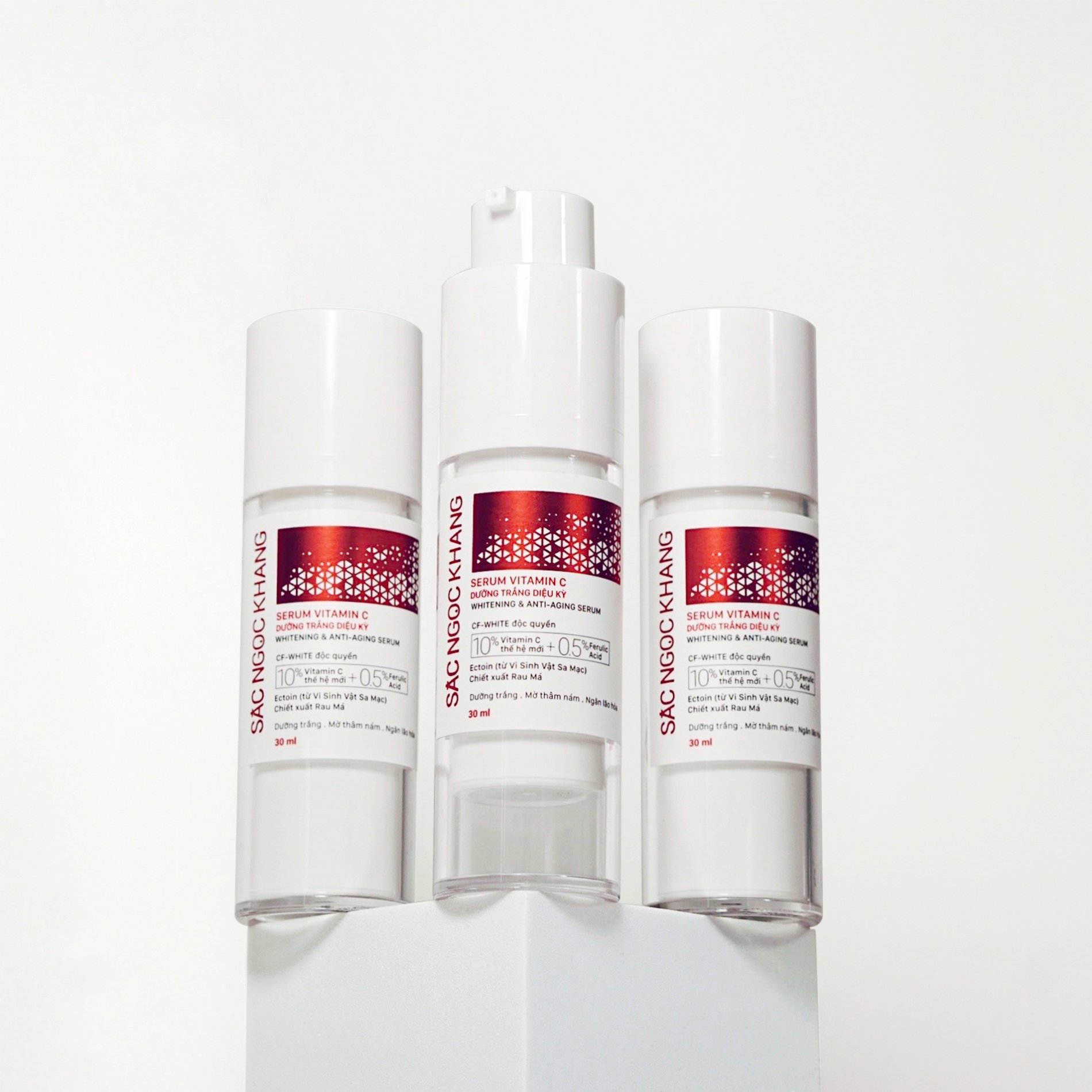 Khắc phục hoàn toàn nhược điểm của các loại serum vitamin C khác trên thị trường. Serum Sắc Ngọc Khang chứa vitamin C thế hệ mới VC-IP từ Nhật Bản, bền vững và ổn định nhất với rất nhiều đặc tính nổi bật: